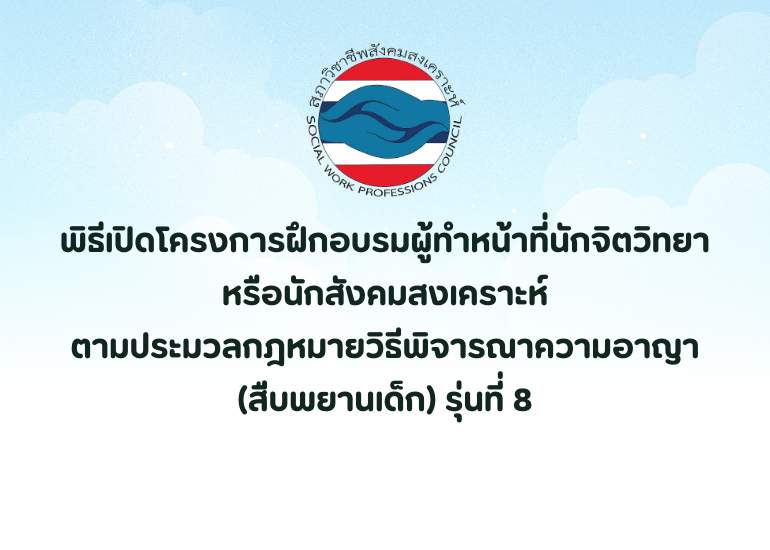 เปิดรับสมัครผู้สนใจเข้าอบรม โครงการฝึกอบรมผู้ทำหน้าที่นักจิตวิทยาหรือนักสังคมสงเคราะห์ ตามประมวลกฎหมายวิธีพิจารณาความอาญา(สืบพยานเด็ก) 2025-09-29