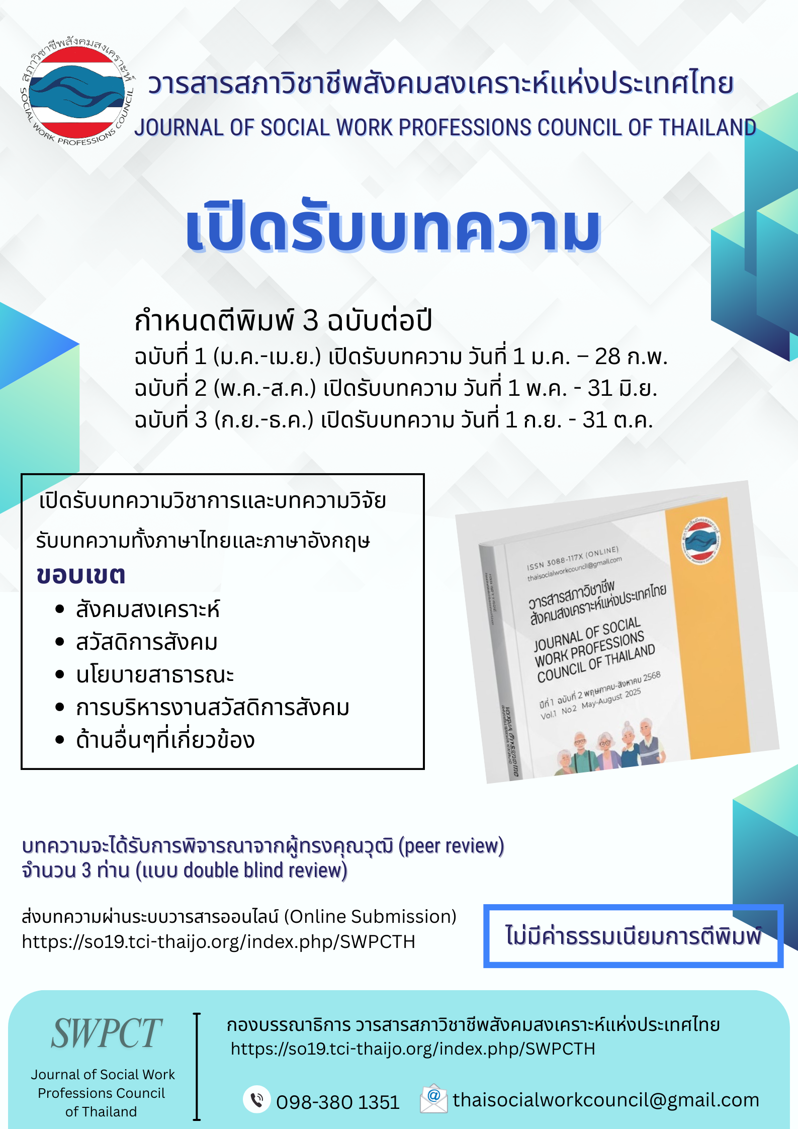 ผู้สนใจอ่านและดาวน์โหลดบทความได้ที่ https://so19.tci-thaijo.org/index.php/SWPCTH/issue/view/243