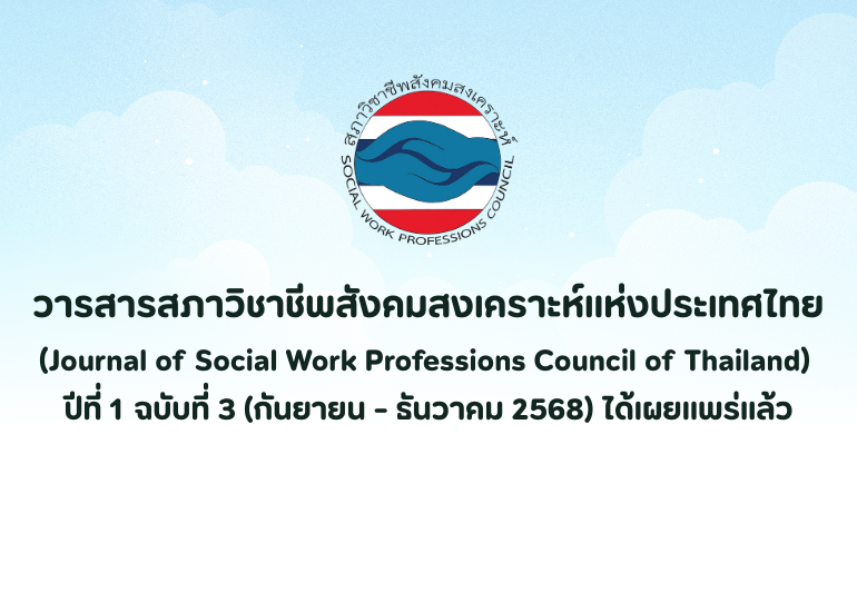 วารสารสภาวิชาชีพสังคมสงเคราะห์แห่งประเทศไทย (Journal of Social Work Professions Council of Thailand) ปีที่ 1 ฉบับที่ 3 (กันยายน - ธันวาคม 2568) ได้เผยแพร่แล้ว 2026-01-12
