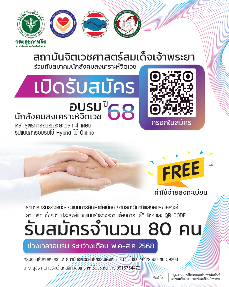 อบรมหลักสูตรนักสังคมสงเคราะห์เฉพาะทางสุขภาพจิตและจิตเวช (PG)