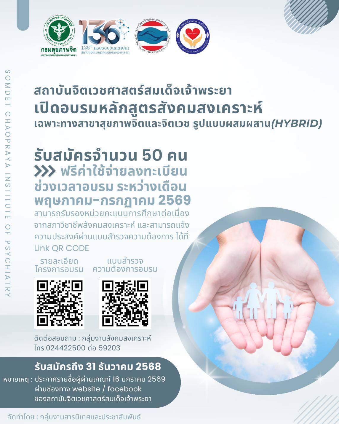 แจ้งความต้องการอบรม ได้ที่ แบบสำรวจความต้องการอบรมนักสังคมสงเคราะห์จิตเวช