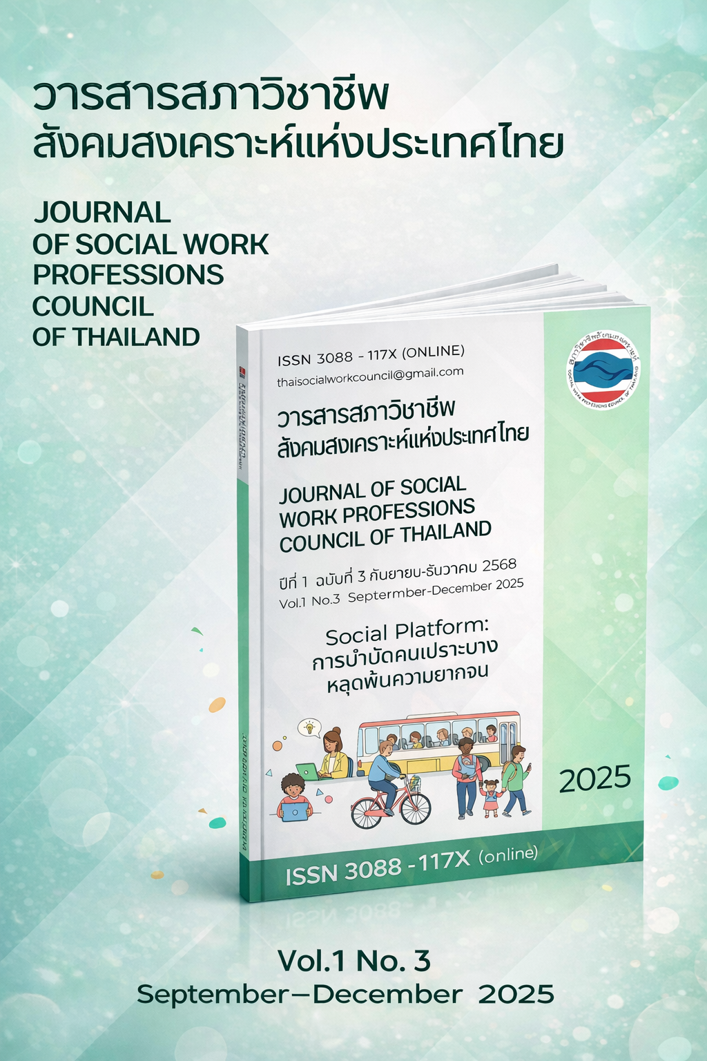 วารสารสภาวิชาชีพสังคมสงเคราะห์แห่งประเทศไทย (Journal of Social Work Professions Council of Thailand) ปีที่ 1 ฉบับที่ 3 (กันยายน - ธันวาคม 2568) ได้เผยแพร่แล้ว